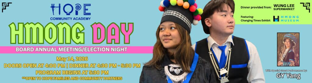 At HOPE Community Academy, we believe in creating a collaborative and supportive environment to inspire students to achieve high academic success while embracing the Hmong language and culture.